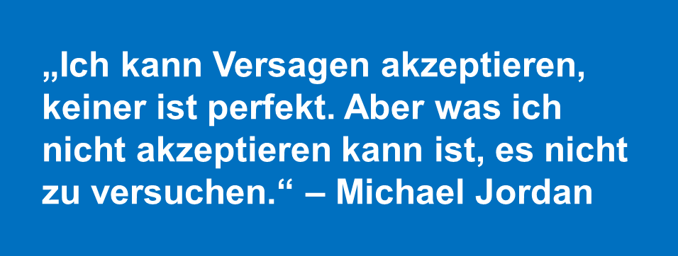 Das Zitat von Michael Jordan ist sicherlich für viele gleich nachvollziehbar, lenkt aber das Augenmerk auf (wie auch immer zu definierendes) Versagen und zu kämpfen, schlicht es einfach zu versuchen.
