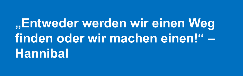 Hannibal und seine Elefanten sind natürlich ein tolles Sinnbild für Zielstrebigkeit und auch dafür, dass ein anstrengender Weg, den sich niemand vorher getraut hat, durchaus erfolgversprechend sein kann – und sich am Ende auszahlt.